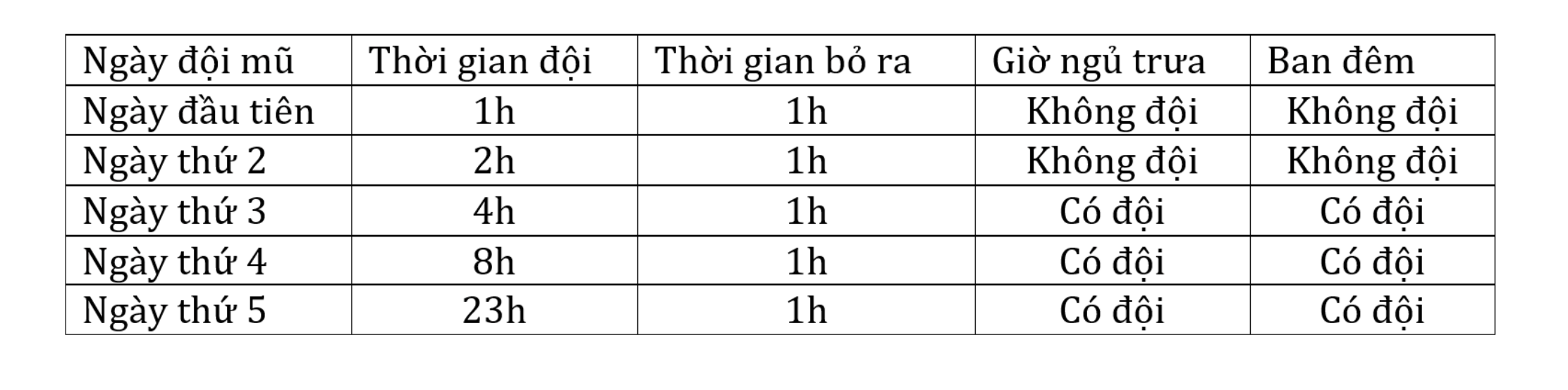 Thời gian đội mũ hiệu quả phụ thuộc vào: